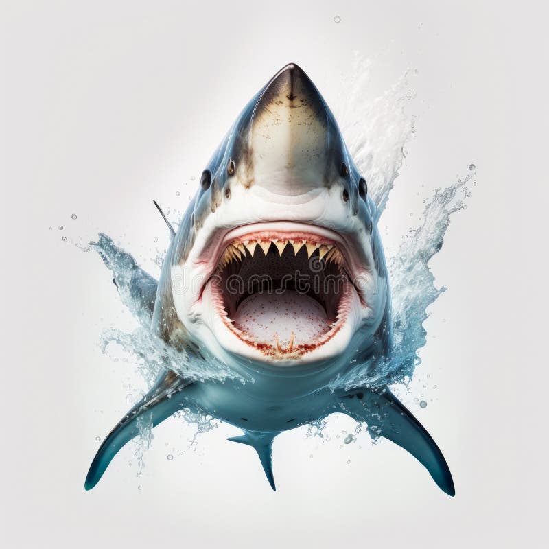 Premium Photo | Great White Shark With Open Mouth On White Background